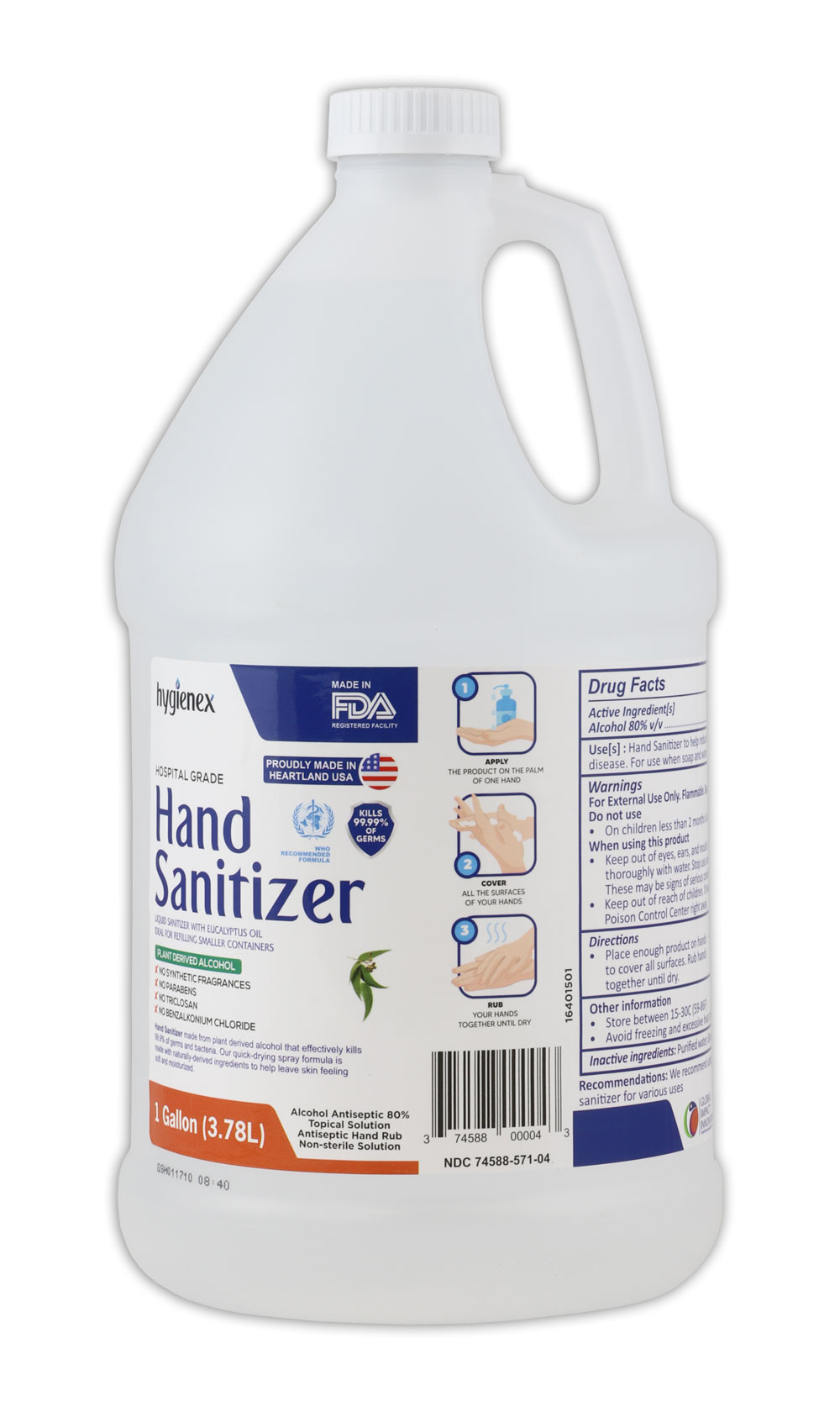 Hygienex Hand Sanitizer Liquid Refill 1 Gallon 128 Oz Scented With Eucalyptus Oil 80 Alcohol Made In Usa Who Approved Formula Walmart Com